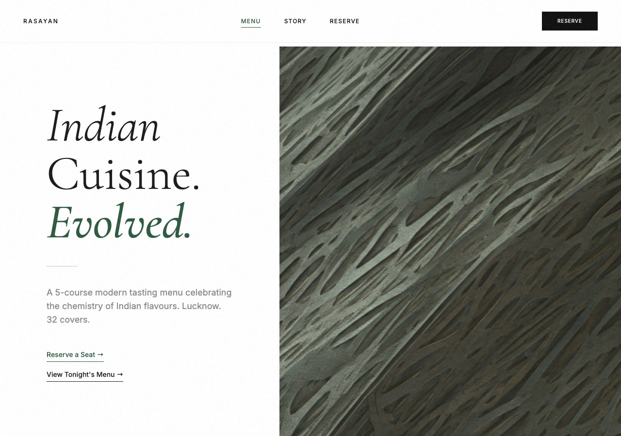 Premium dining template with table reservation, gallery, and chef's tasting menu.